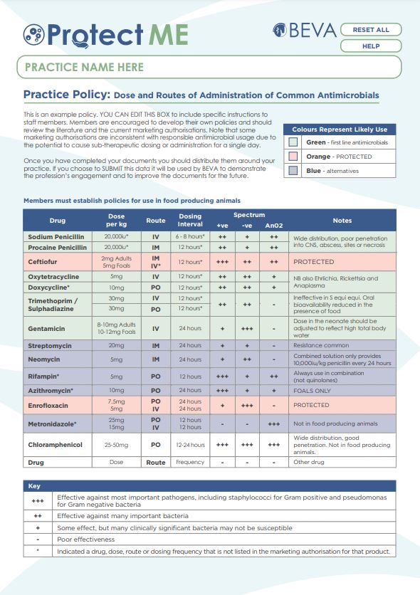 The practice policy template will enable you to set doses and routes of administration of common antimicrobials. (note: if you open the form in a web browser you may lose some functionality).