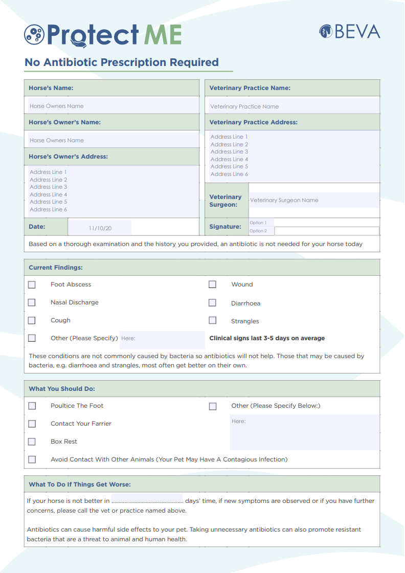 Use the BEVA no antibiotic prescription form when you are note prescribing antibiotics